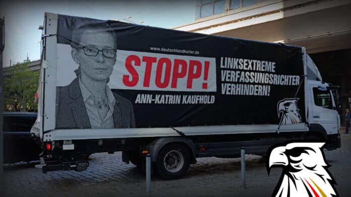 Trotz des Aufsehens, das der Deutschland-Kurier mit seiner LKW-Protestaktion im Regierungsviertel gegen die Wahl einer Linksextremistin zur Verfassungsrichterin auslöste, ging zuletzt alles ganz schnell: Erst wählte der Deutsche Bundestag Ann-Katrin Kaufhold mit CDU/CSU-Stimmen (!) zur Bundesverfassungsrichterin, einen Tag später machte der Bundesrat die Klima- und Enteignungsideologin einstimmig zur Vizepräsidentin des höchsten deutschen Gerichts.