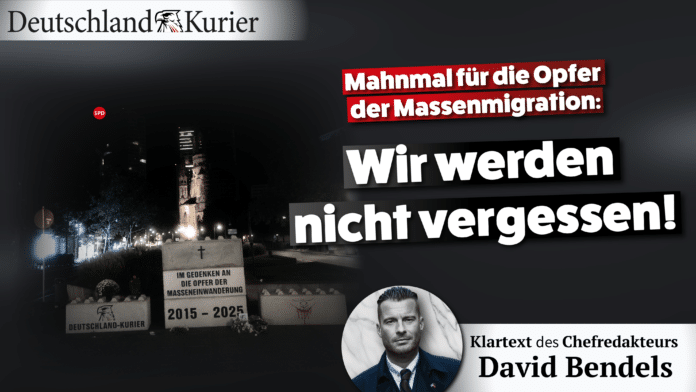 All den unzähligen Opfern der katastrophalen und blutigen Masseneinwanderungspolitik setzt der Deutschland-Kurier im Herzen der deutschen Hauptstadt ein monumentales Denkmal. In Sichtweite der Kaiser-Wilhelm-Gedächtniskirche und des Schauplatzes des mörderischen Terroranschlags am Breitscheidplatz vom 19. Dezember 2016 schenkt dieses Monument den Angehörigen und Hinterbliebenen der Opfer und allen Deutschen einen würdigen Ort des Gedenkens.