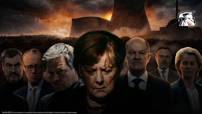 Es sind vor allem diese Namen, die sich mit der wohl folgenschwersten energiepolitischen Fehlentscheidung in der Geschichte der Bundesrepublik Deutschland und später mit der Abwrackung auch noch der letzten drei Atommeiler verbinden: Angela Merkel (CDU), Markus Söder (CSU), Robert Habeck („Grüne“), Olaf Scholz (SPD), Christian Lindner (FDP), Friedrich Merz (CDU) und Ursula von der Leyen (CDU).